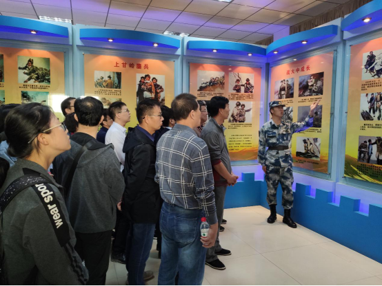 在“黄继光英雄连”连队战士喻朝阳(原天游官网资工21405班学生)的带领和讲解下,老师与同学参观了黄继光连荣誉室,一张张图片、一排排奖杯、一面面锦旗,是英雄连队“听党指挥、能打胜仗、作风优良”的印证。在98抗洪、国庆阅兵、中俄联演与汶川抗震……中都有着黄继光连队的影子,薪火相传、历久弥,新黄继光英雄精神已深深融入连队发展的血脉。站在历史面前,凝望那段记录苦难辉煌的文字和曾经鲜活的年轻生命时,在场的师生无不为革命先烈们坚毅的品格和随时为人民付出一切的牺牲精神所震撼感染,是英雄的鲜血换来了我们今日的幸福生活!随后,在讲解战士喻朝阳的带领下继续参观了士兵宿舍与连队训练的场地,更加近距离的感受军队的魅力所在。