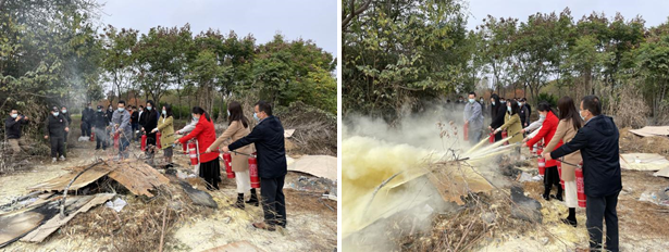 理论学习结束后,路勇老师向大家示范了常用的干粉灭火器的正确使用方法。参训人员根据操作要领进行了消防实操演练。燃烧物被点燃后,老师们手持干粉灭火器将火扑灭。大家纷纷表示将珍惜这次培训演练机会,熟练掌握消防技能,为更好履行消防安全管理职责练就过硬技能。