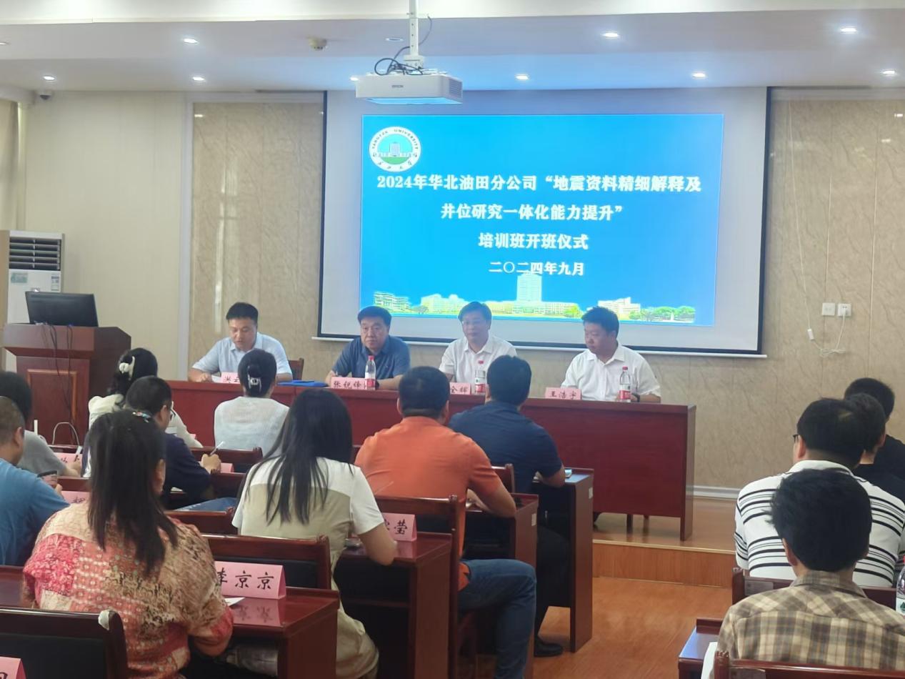 (通讯员 程玲)9月2日上午,华北油田分公司2024年“地震资料精细解释及井位研究一体化能力提升”培训班在武教B203开班。华北油田首席专家张锐锋、华北油田勘探事业部高级主管王浩宇,天游线路检测中心党委书记杨全辉、社会合作处副处长洪云飞出席开班仪式。