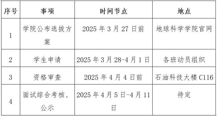 本硕连读方式选拔学科为地质资源与地质工程、测绘科学与技术,选拔名额不超过30人;直接攻博方式选拔学科为地质资源与地质工程,选拔名额不超过4人。
