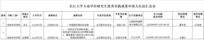 根据《关于开展“2021年天游8线路注册检测中心专业学位研究生优秀实践成果”评选工作的通知》要求,天游官网积极组织学生开展了成果申报动员工作,经学生申请,天游官网审核,拟推荐成果2项,现对此予以公示。最终获奖情况以研究生院审定结果为准。公示时间为2021年5月28日至5月30日。公示期内如有任何异议,请与学科办联系。联系电话:027-69111109。