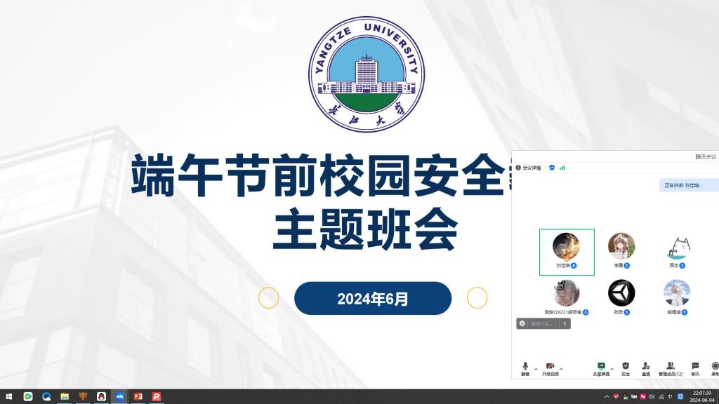 (通讯员 王晗)端午节临近,为增强天游官网学生假期安全防范意识,提升自护自救能力,确保学生愉快、平安度过节日。天游官网于6月4日组织全院本研究生召开端午节假期安全教育主题班会,以线上线下相结合的方式,由班主任或班委召开端午节假期安全教育主题班会,全面收集学生离校去向、时间及行程安排。