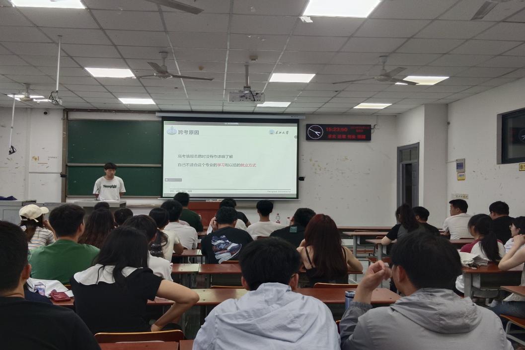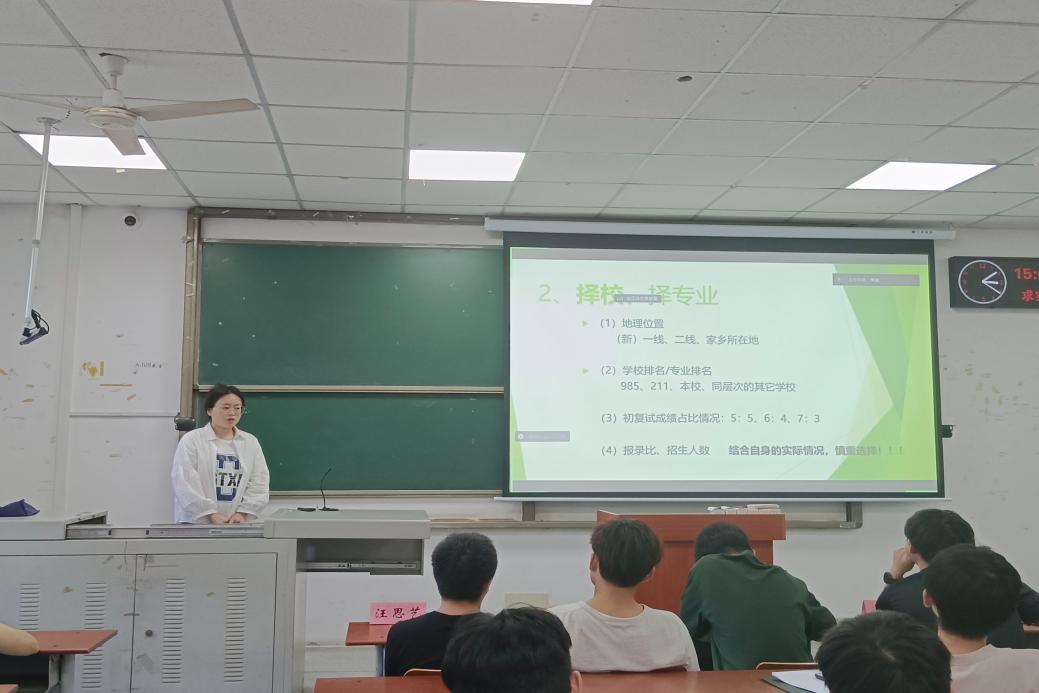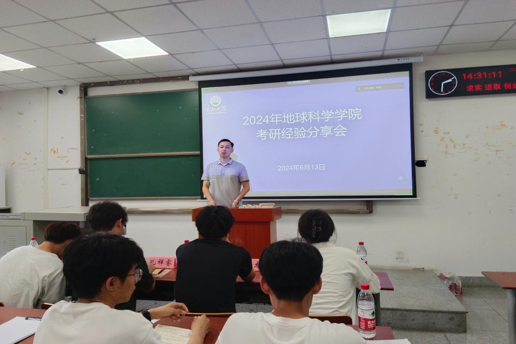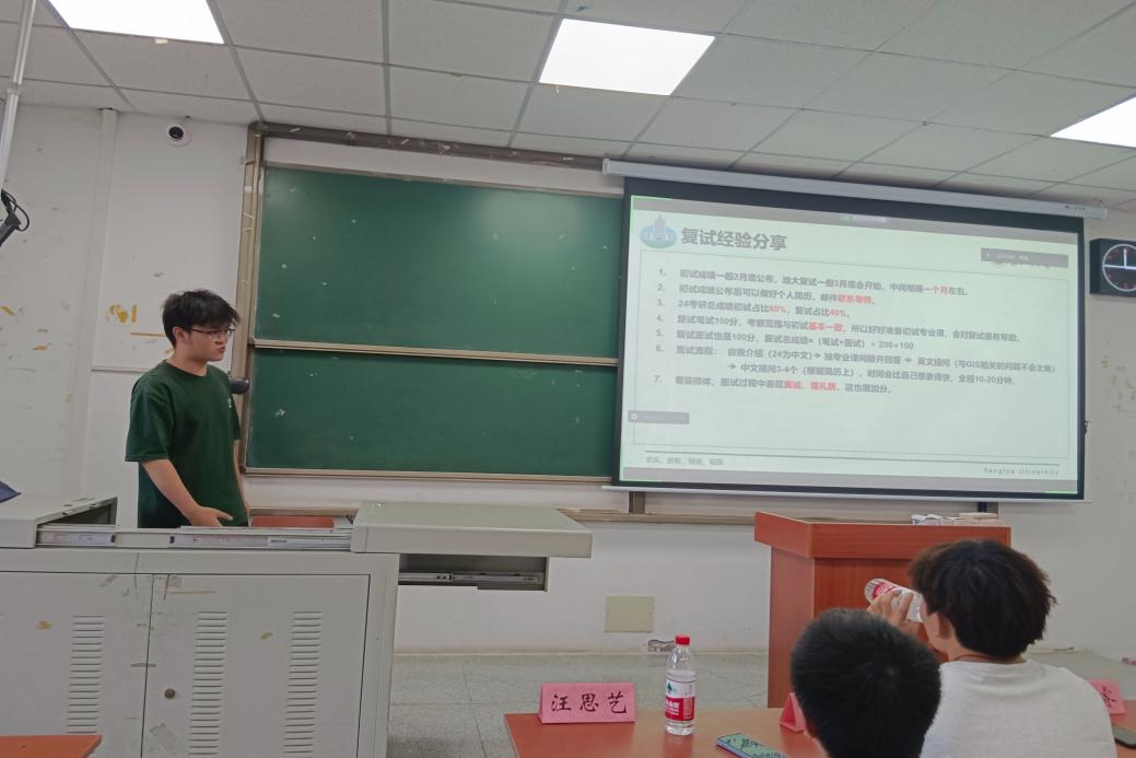 会议伊始,来自地质(资源)22002班的汪思艺分享了他备考本校的心路历程。他从天游8线路注册检测中心的科研实力、师资力量、奖助津贴等方面详细介绍了报考本校的优势,鼓励大家积极选择在本校深造。