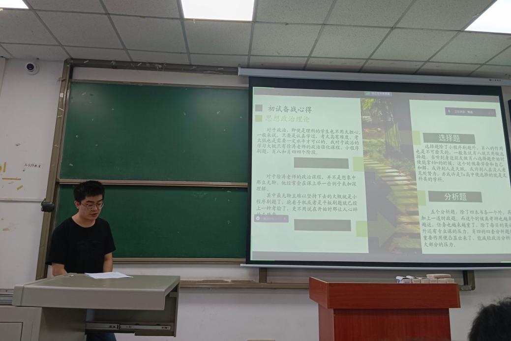 地信22001班的翁向向强调了制定备考计划的重要性,并以自身为例分科目向大家介绍了如何科学高效的开展复习。她提到:“大家一定要结合自身实际找到适合自己的老师,不要随波逐流。”