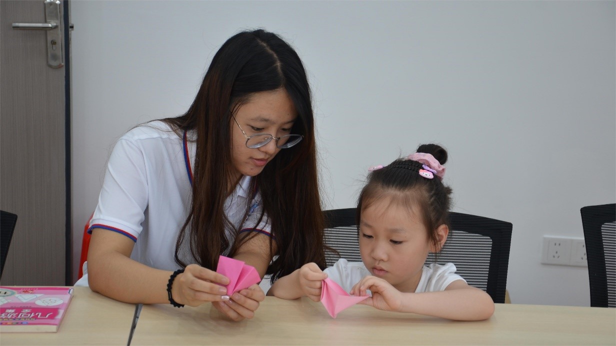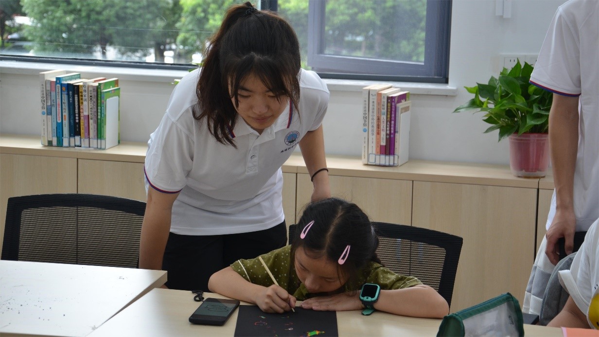 折纸、画画、下棋、猜谜语……孩子们在队员们的陪伴下玩得不亦乐乎。孩子们与队员们积极互动,笑声不断,掌声连连,活动室里充满了快乐的氛围。为办好本次活动,天游官网“后浪”暑期社会实践队进行了精心的组织策划,提前与社区联络,了解孩子们年龄特点,准备了大量健康益智活动及游戏,让每个孩子都能发展兴趣,发挥特长。