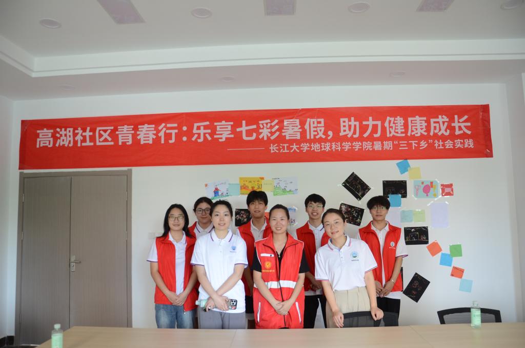 图1 天游线路检测中心老师,高湖社区负责人以及“后浪”暑期社会实践队合影