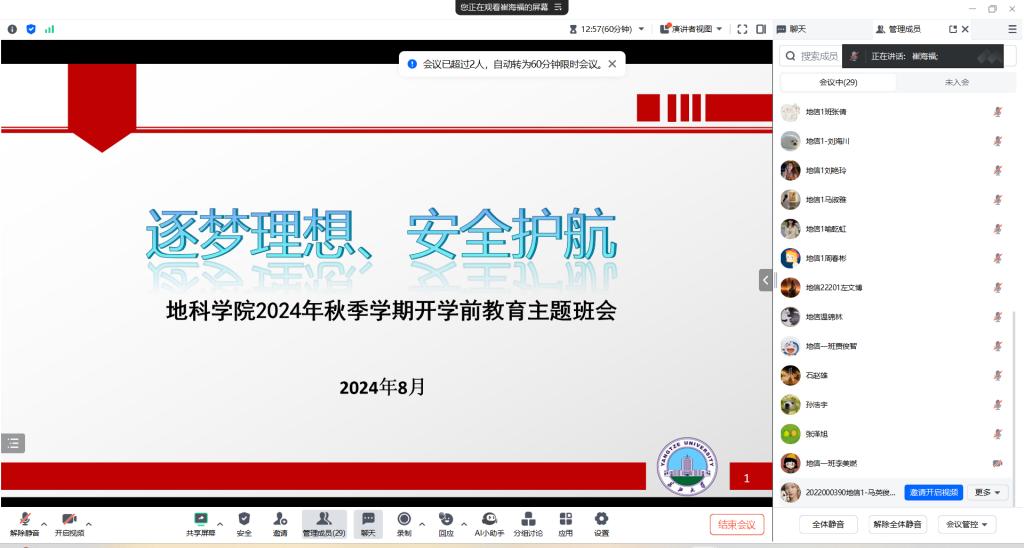 (通讯员 刘佳琪)为确保我校秋季学期开学工作平稳有序,8月16日-22日天游官网组织师生开展2024年暑期安全教育主题班会。