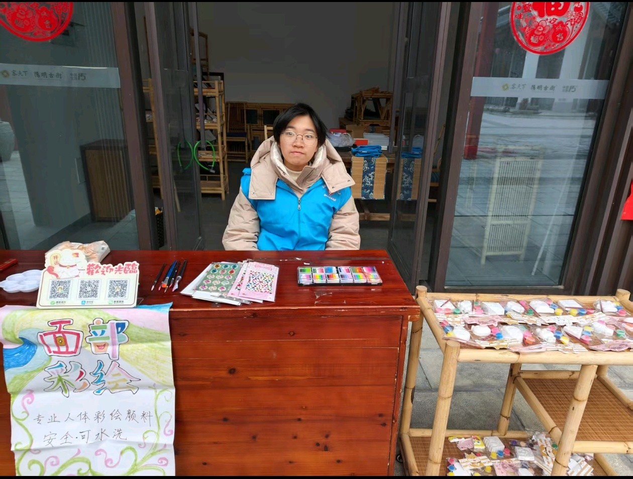 2025年新春期间,崇义县三立广场阳明古街举办了“新春七天乐”集市活动。地信22301班赵欣悦等返乡大学生积极参与,策划并运营了“重生之我在崇义过新年”主题摊位,经营手工糖葫芦、彩绘、摄影、陶瓷工艺品及创意游戏等多元业态。不仅弘扬了传统文化,也为家乡的文旅产业注入了青春活力。赵欣悦表示:“此次活动让我深刻体会到创业的艰辛与乐趣,也让我更加坚定了服务家乡的信念。未来,我将继续以实际行动为崇义文旅发展贡献自己的力量。”