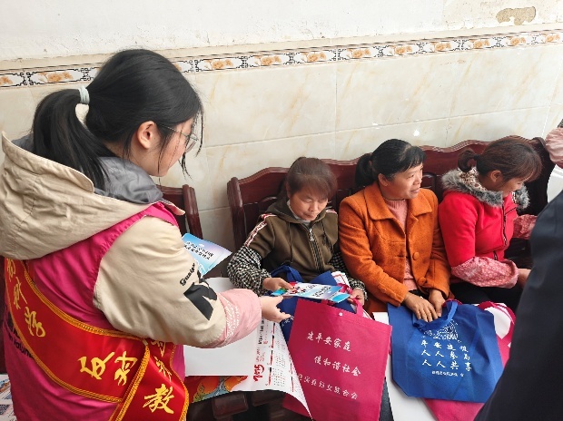 资工12401班的陆新灿寒同学参与了德保县妇女联合会的实践活动,协助开展妇女权益保护、家庭教育宣传等工作。她深入社区和乡村,为妇女群众提供法律咨询、心理辅导等服务,用实际行动传递温暖和力量。妇女联合会的工作人员对学生的表现给予了高度评价:“大学生认真负责,充满热情,他们的参与为我们的工作注入了活力。”