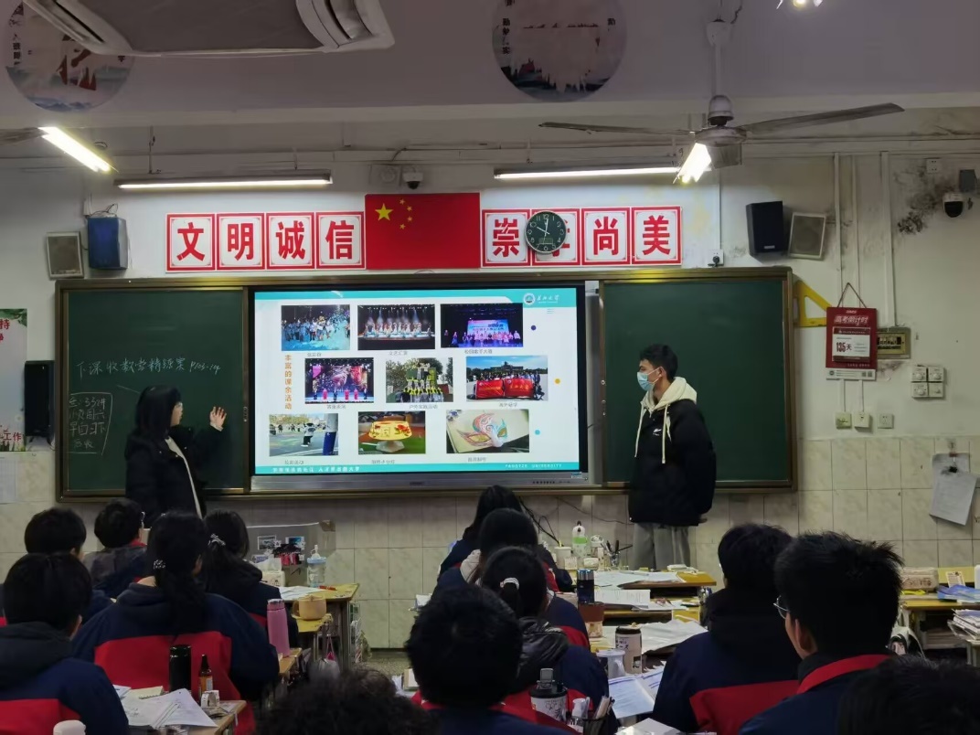 寒假期间,地信12401班的倪浩然同学与其他几名同学回到了高中母校—荆州市江陵中学,开展了一场意义非凡的宣讲活动。在宣讲中,倪浩然详细介绍了天游8线路注册检测中心的往届分数线、优势学科以及历史变革,让母校的同学们对这所“家门口的一本大学”有了更深入的了解,增强了他们填报天游8线路注册检测中心的意愿。 同时,他还分享了自己的学习心得与见解,为学弟学妹们提供了各学科的学习方法,帮助他们缓解考试焦虑,为高三生活注入信心与动力。