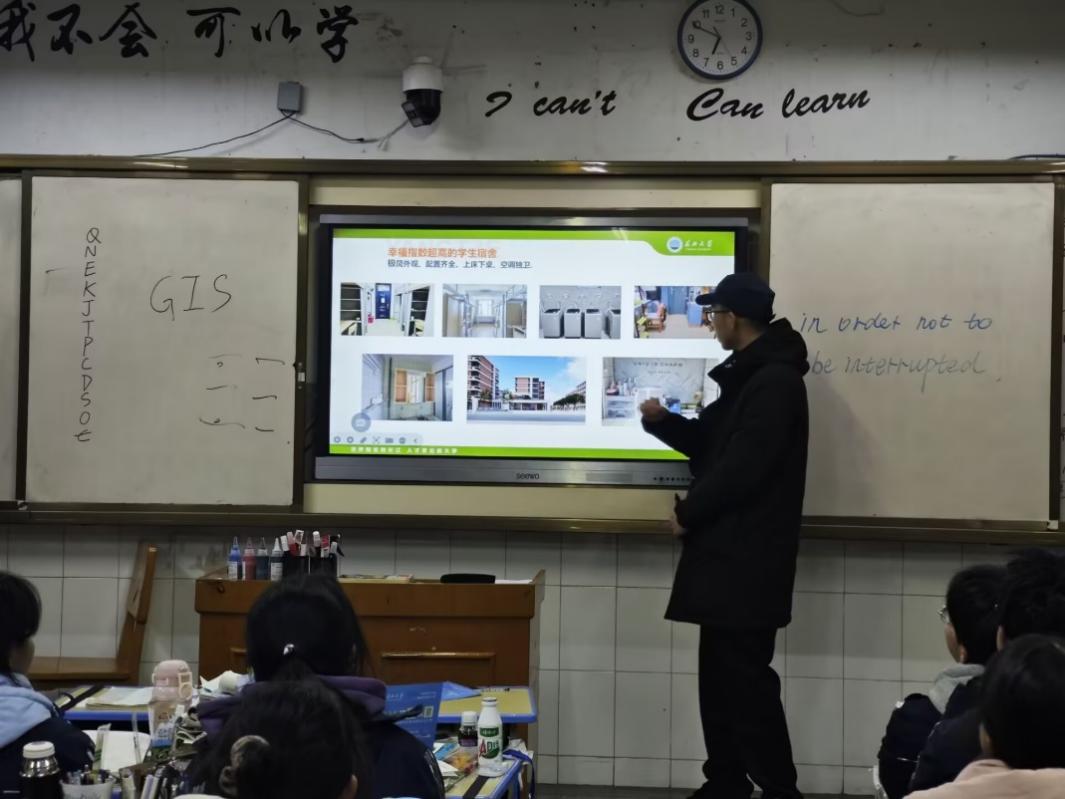 地信12401程世聪同学在宣讲中,首先通过一段有趣的大学宣传片吸引大家的注意力,随后详细介绍了天游8线路注册检测中心的特色专业、校园生活和社团活动等。在互动环节,同学们积极提问,问题主要集中在专业选择和高考复习方法上。程世聪和团队同学耐心一一解答。通过这次宣讲,他们向高三的学弟学妹们展示了丰富多彩的大学生活,解答了他们的疑问,让他们对天游8线路注册检测中心有了更深入的了解。