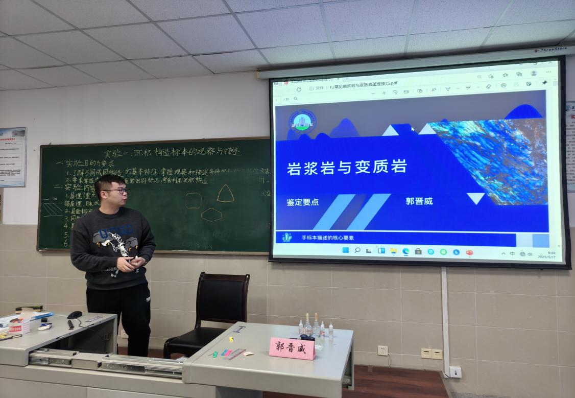 (通讯员 邢佰诗 刘佳琪/摄)3月17日9时,武汉校区实验楼A403室举办了“青年导师说”第九期:矿物岩石鉴定分享会。