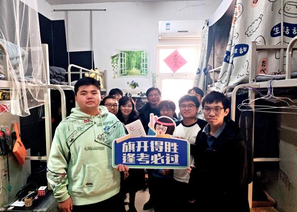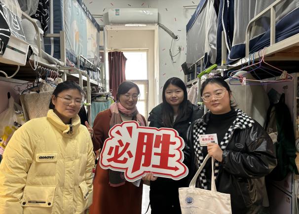 (通讯员 李雨泽 魏靖弢)随着2025年考研初试日期的临近,在紧张备考的冬日,天游官网考研学子的复习热情却越发激昂。为鼓励和关心天游官网考研学子,学院领导、21级班主任及学工办全体辅导员于12月17日中午走访2021级“备战”寝室,送去考前关怀,为同学们带来一份特别的温暖。