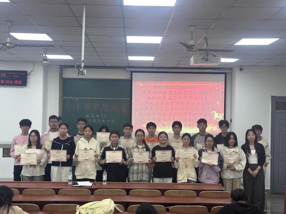 上学年共有约一百五十名同学报名参加活动,覆盖了武汉校区所有学院。志愿服务部以参与支教次数为依据评选,表彰以付士康同学为代表的杰出志愿者5人,以陈莹同学为代表的优秀志愿者31人,为他们颁发证书和奖品,同时给以郝伟宸同学为代表的88名同学发放志愿者纪念奖品。