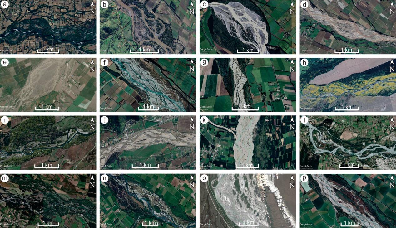 图1现代砾质辫状河心滩及河道平面分布特征