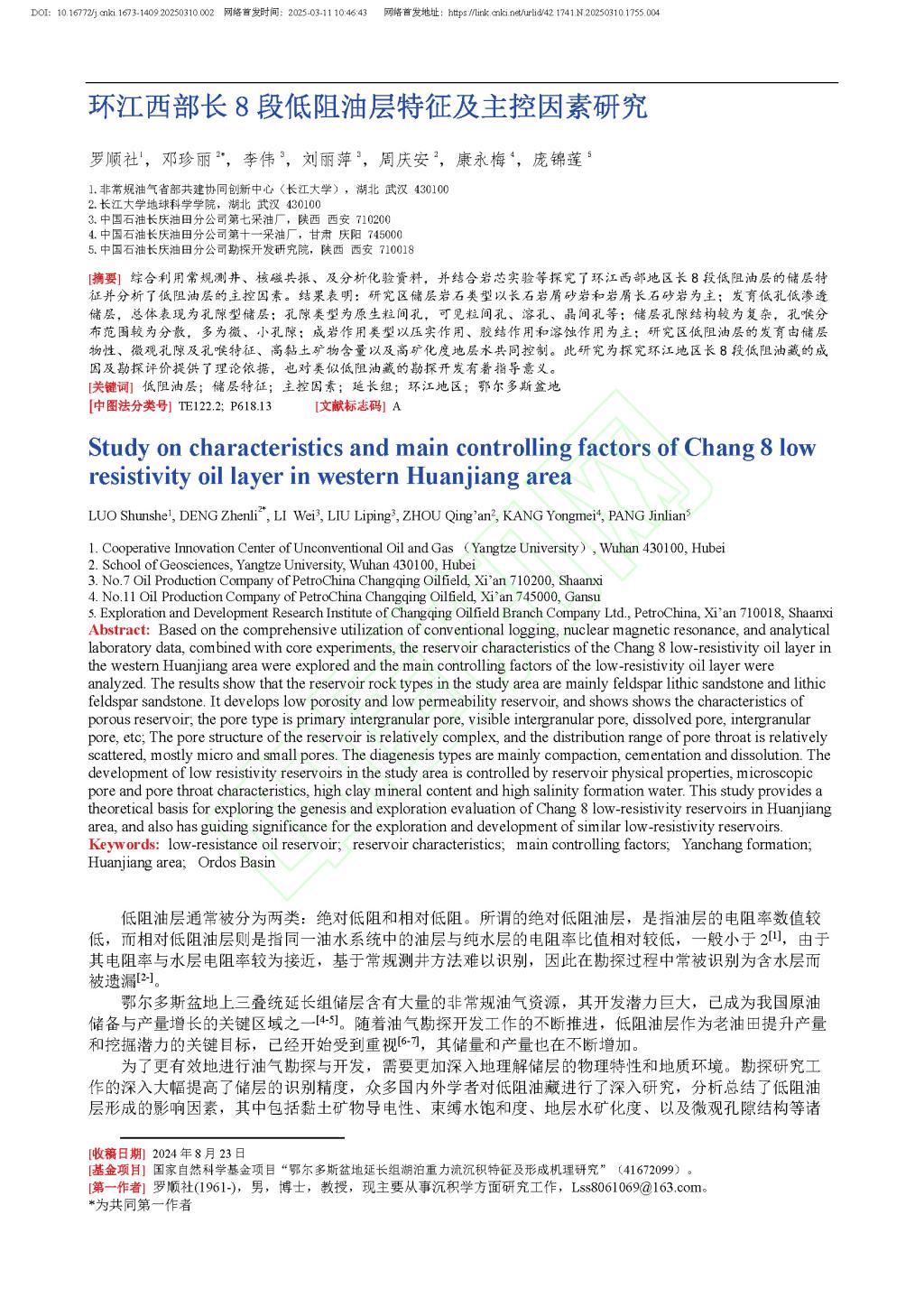 天游线路检测中心硕士生邓珍丽在天游8线路注册检测中心学报(自然科学版)发表题目为“环江西部长8段低阻油层特征及主控因素研究”的研究论文。天游线路检测中心为论文第一署名单位,为论文第一作者,导师罗顺社为第一作者,硕士研究生邓珍丽为论文通讯作者。