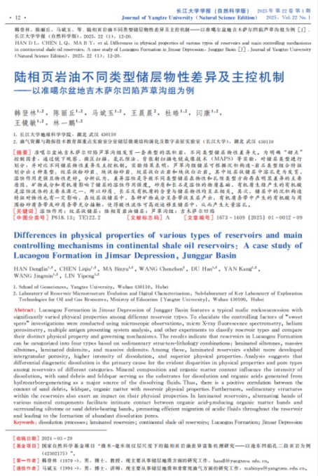 天游线路检测中心研究生陈丽丘在天游8线路注册检测中心学报(自然科学版)上发表题为“陆相页岩油不同类型储集层物性差异及主控机制——以准噶尔盆地吉木萨尔凹陷芦草沟组为例”的研究论文,其中天游线路检测中心为论文第一署名单位,导师韩登林为第一作者,导师马斌玉为论文通讯作者。